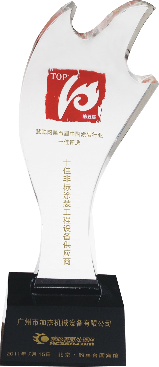 熱烈祝賀加杰機械榮獲“2011年度十佳涂裝民族品牌”稱號